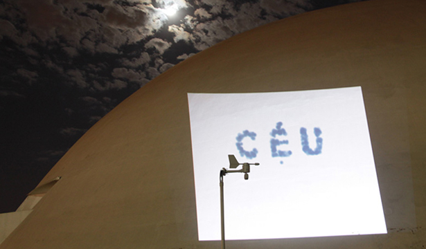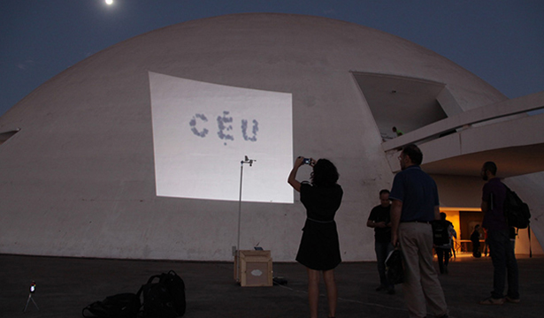 The artwork considers the Brasilia's highway axes (North Wing and South Wing of the aeroplane-shaped plan of Brasilia) as a reference of the cardinal points over the Brazilian map, so that it may bring the clouds from different parts of Brazil based on the winds direction, configuring a symbolic dialogue between local and imaginary skies. Resulting of particles generated by algorithms of distant skies pointed by the local wind, the composition of the clouds is exhibited in a real-time projection.