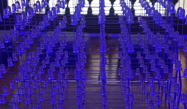 The movement of the flow of passers-by in the red-light area is captured by a camera located on top of a building, recording a top view of the area, a network, a mesh, which scans an area and a flow of passers-by. The information gained will feed the system installed in the exhibition. This system consists of a cube of LEDs that emit infrared light, an Arduino board, which will be responsible for the relationship between analog and digital data, and two computers that will process and will handle all data (input and output). Thus, the data sent by the remote camera will be turning on and off the lights of the exhibition cube, generating movements and flows.