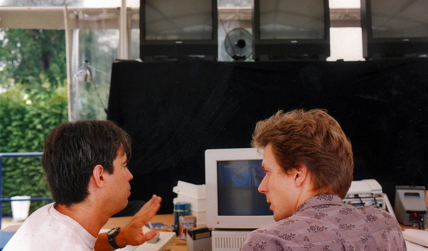 The first images built together were made the 4th of July 1992 between Gilbertto Prado at "Café Electronique" (Paris) and Hermann Keldenich at Electronic Cafe (Kassel - Germany), during the IX Documenta. Other exchanges followed on the 5, 17, 18