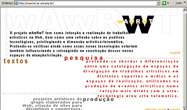 The wAwRwT project intends both to develop artistic work for the Internet as well as to reflect upon the technological poetics, focusing on the artistic-telematic dimension.